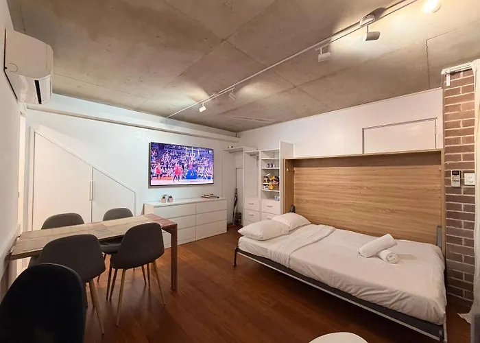 La casa de vacaciones está a 5 minutos a pie de la estación de tren Sydney Erskineville, mientras que la Roca de Sídney se encuentra a 5 km. Los huéspedes pueden visitar el Teatro Enmore, que está a 1 km de esta villa, o visitar el Puente del Puerto de Sídney, que está a 6 km. Entre los lugares de interés educativo a unos 10 minutos en coche de esta propiedad se incluye la Universidad de Nueva Gales del Sur.